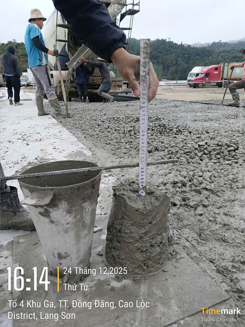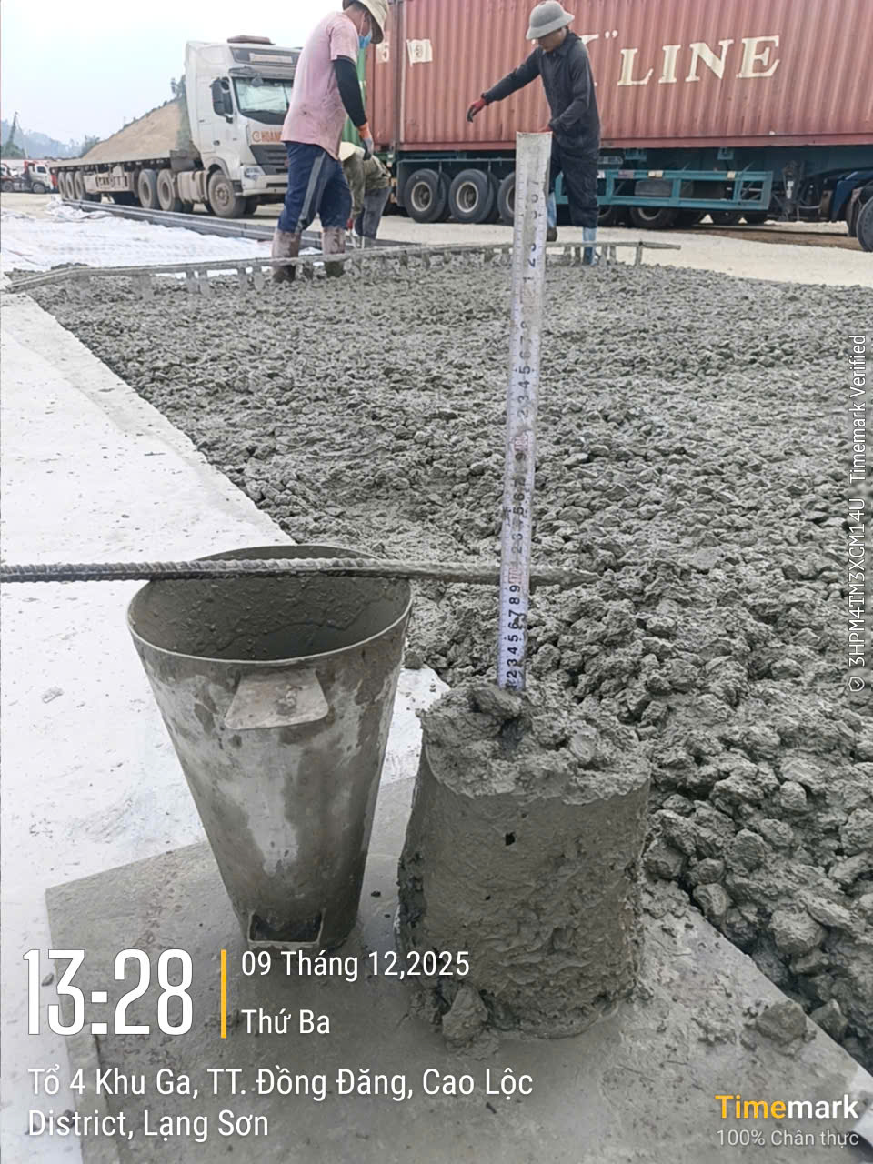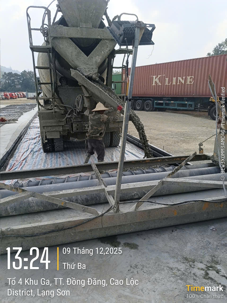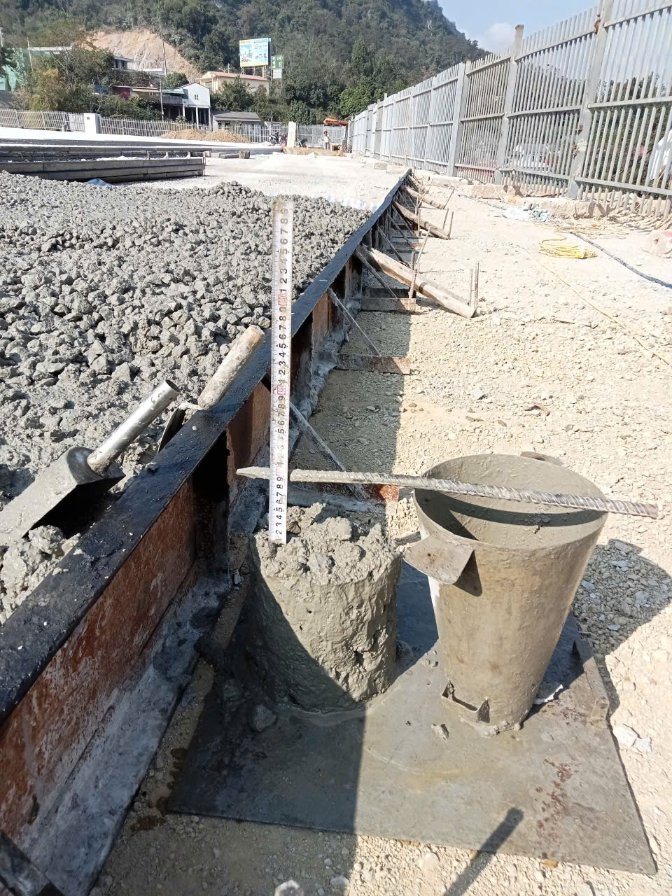 Các kỹ sư FICCO thực hiện nghiêm ngặt quy trình kiểm tra độ sụt bê tông và đo đạc thông số kỹ thuật, đảm bảo nền móng sân bãi đạt tiêu chuẩn chịu tải cao nhất. Từng mét vuông nền đường, sân bãi đang được hoàn thiện đồng bộ, minh chứng cho năng lực thi công và cam kết chất lượng của FICO đối với dự án trọng điểm này.
