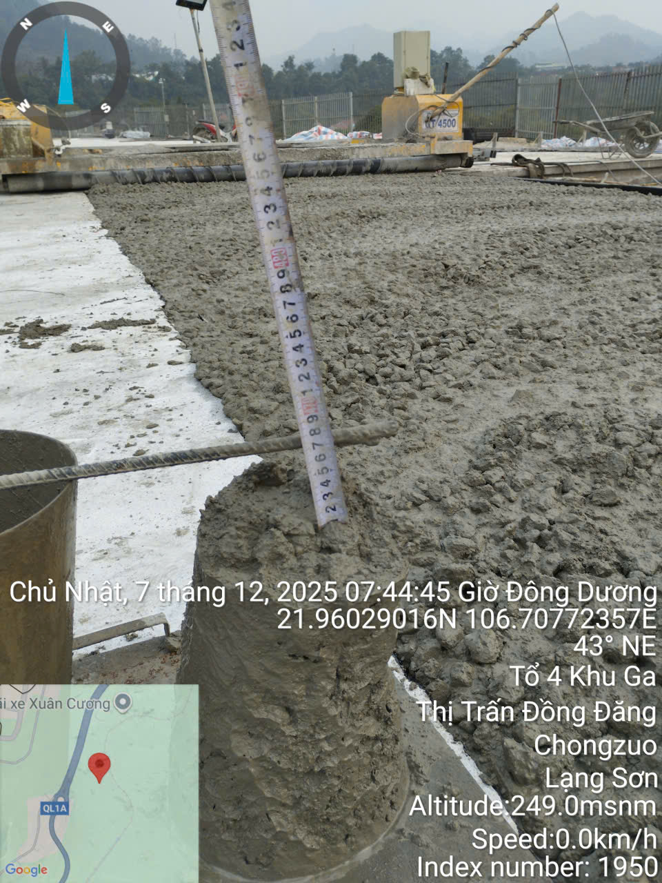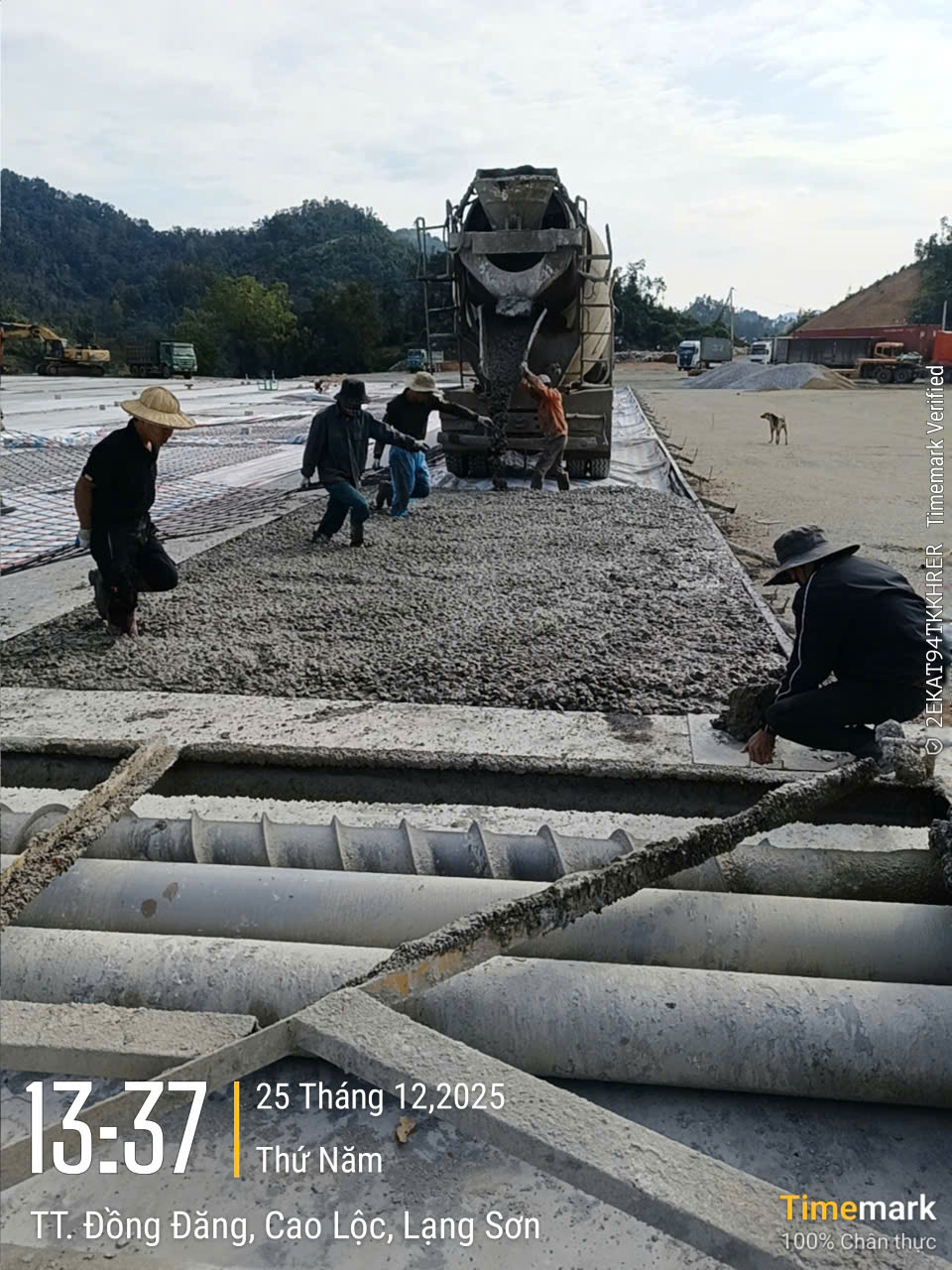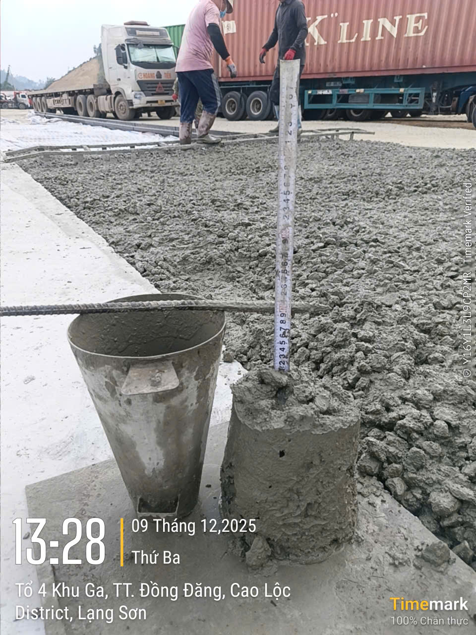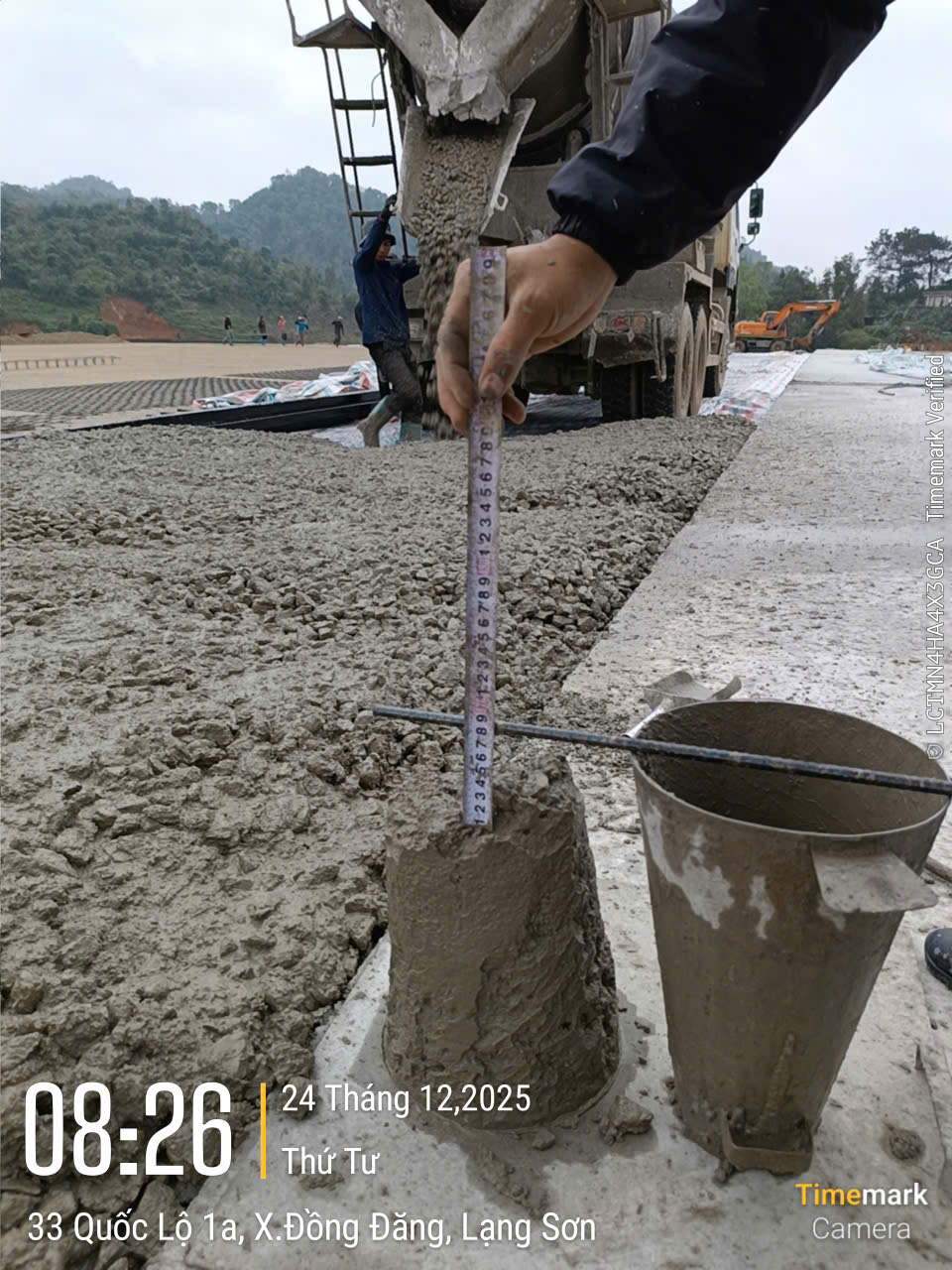 Các kỹ sư FICCO thực hiện nghiêm ngặt quy trình kiểm tra độ sụt bê tông và đo đạc thông số kỹ thuật, đảm bảo nền móng sân bãi đạt tiêu chuẩn chịu tải cao nhất. Từng mét vuông nền đường, sân bãi đang được hoàn thiện đồng bộ, minh chứng cho năng lực thi công và cam kết chất lượng của FICO đối với dự án trọng điểm này.
