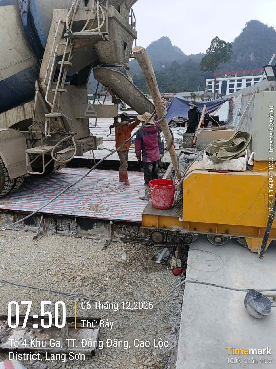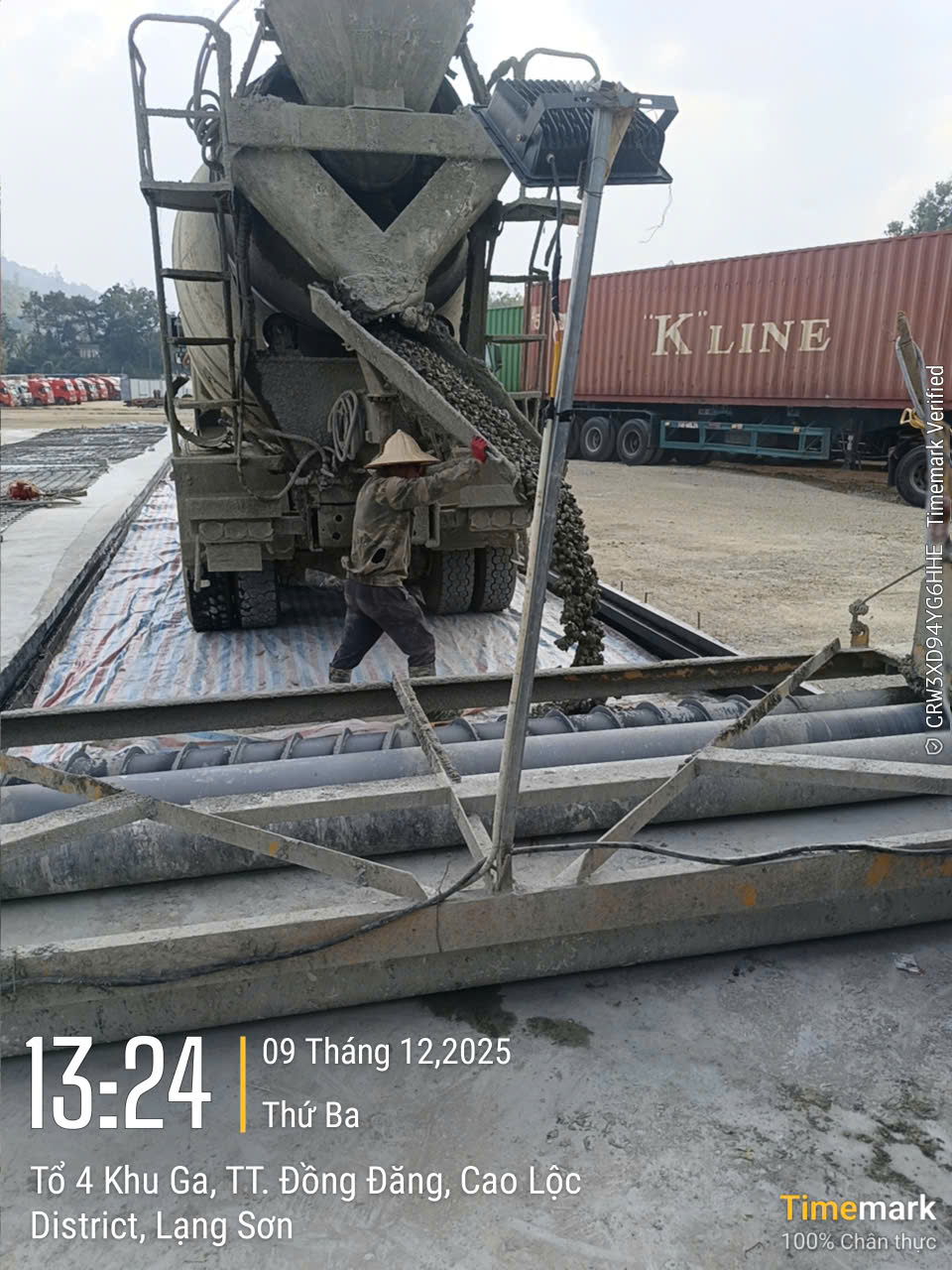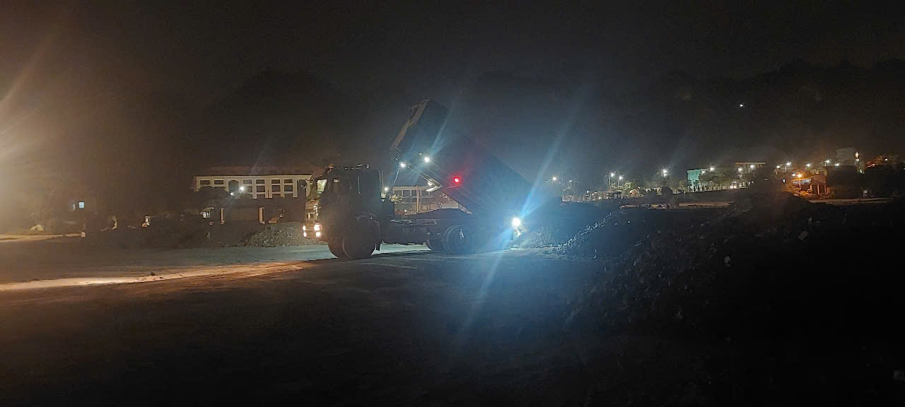 Các kỹ sư thực hiện đo đạc và kiểm tra độ sụt bê tông tỉ mỉ, đảm bảo mọi thông số kỹ thuật đều đạt chuẩn tuyệt đối trước khi thi công. Máy móc và công nhân phối hợp nhịp nhàng dưới ánh đèn, tận dụng từng giờ để hoàn thiện mặt bằng sân bãi rộng lớn. Những dải bê tông phẳng phiu dần lộ diện, khẳng định cam kết của FICCO trong việc tạo ra hạ tầng logistics bền vững và hiện đại cho cửa ngõ giao thương của quốc gia.